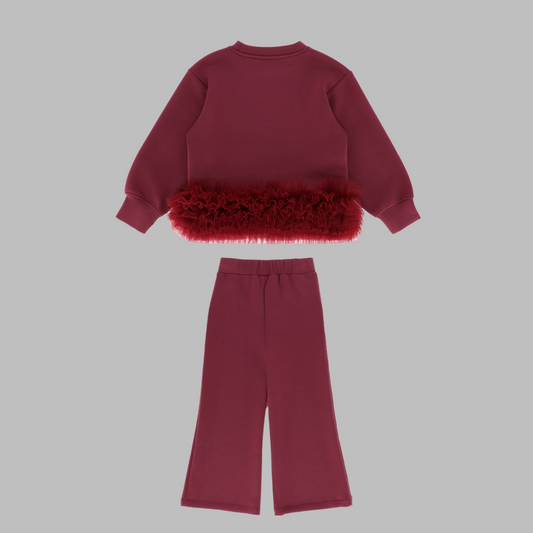 Angel's Face: DEONNE TULLE TRIM TOP AND JOGGER SET BURGUNDY