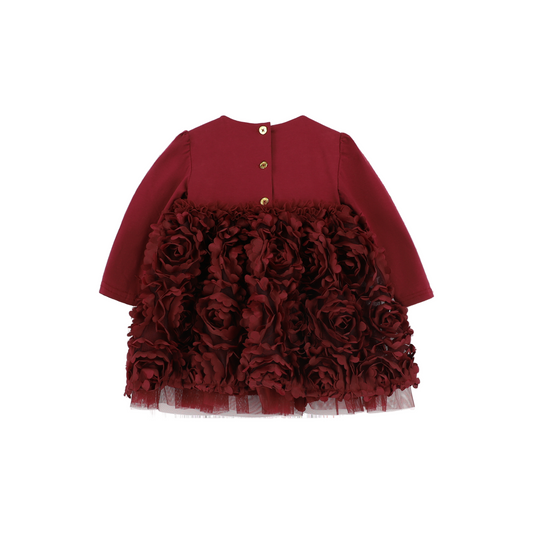 Angel's Face: LIVELY BABY L/S 3D ROSES DRESS BURGUNDY