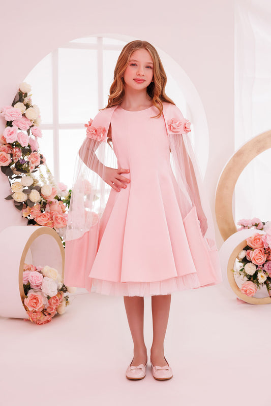 Sofia Baby Girls Tulle Cape Dress- Rose