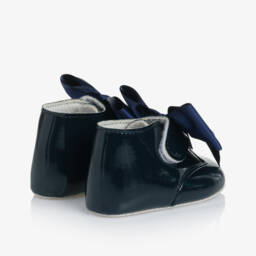 Baby Girls Navy Blue Patent-Pre walker Boots with Satin