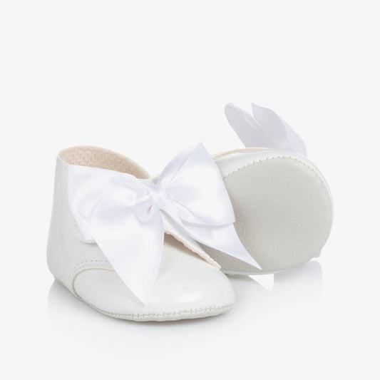 Baby Girls Ivory Patent-Pre walker Boots with Satin