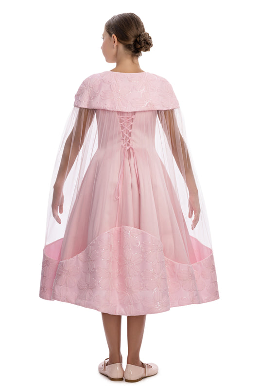 Sofia Baby Floral Embroidered Cape Tulle Dress Pink