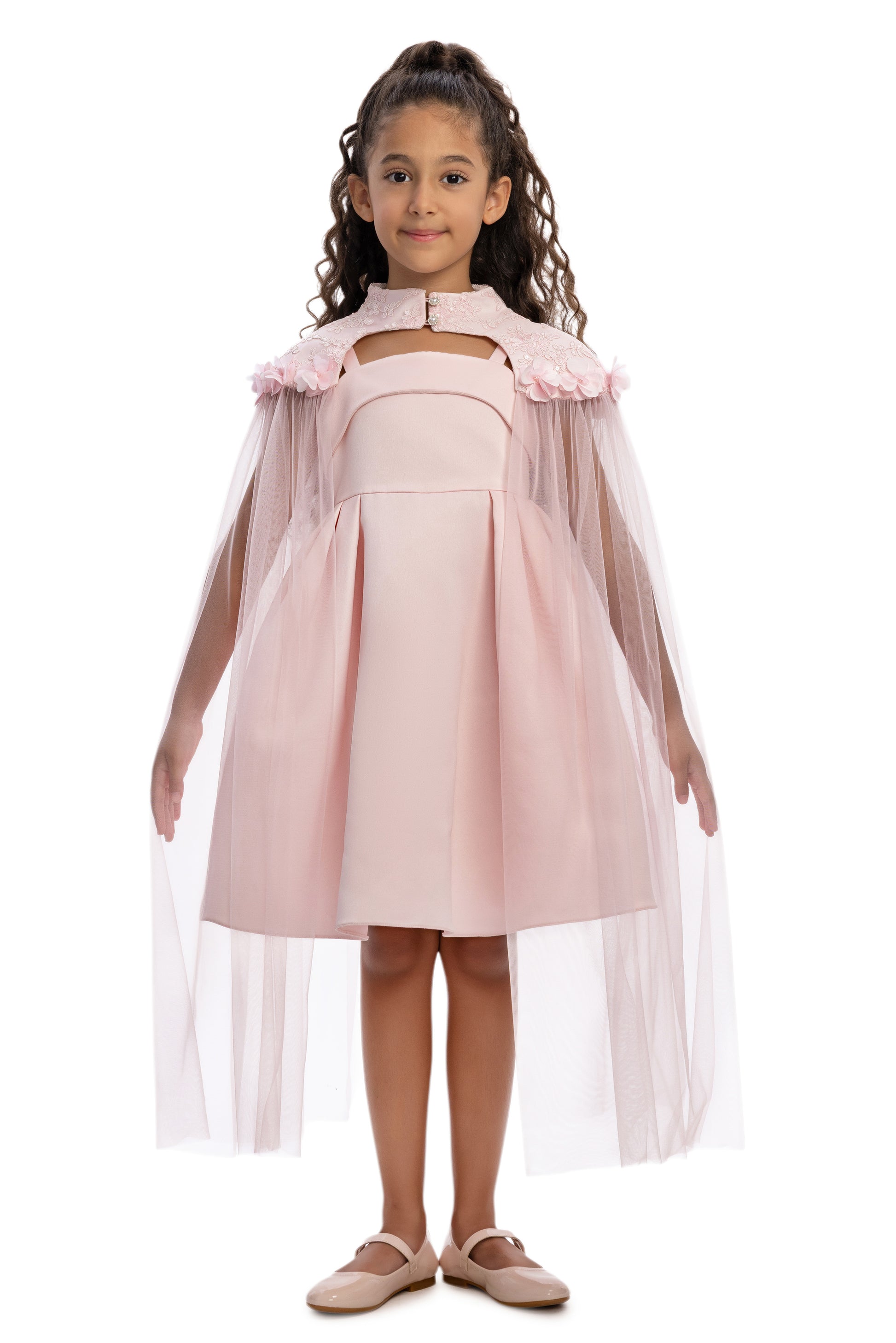 Sofia Baby Embroidered Lace Cape Dress-Pink