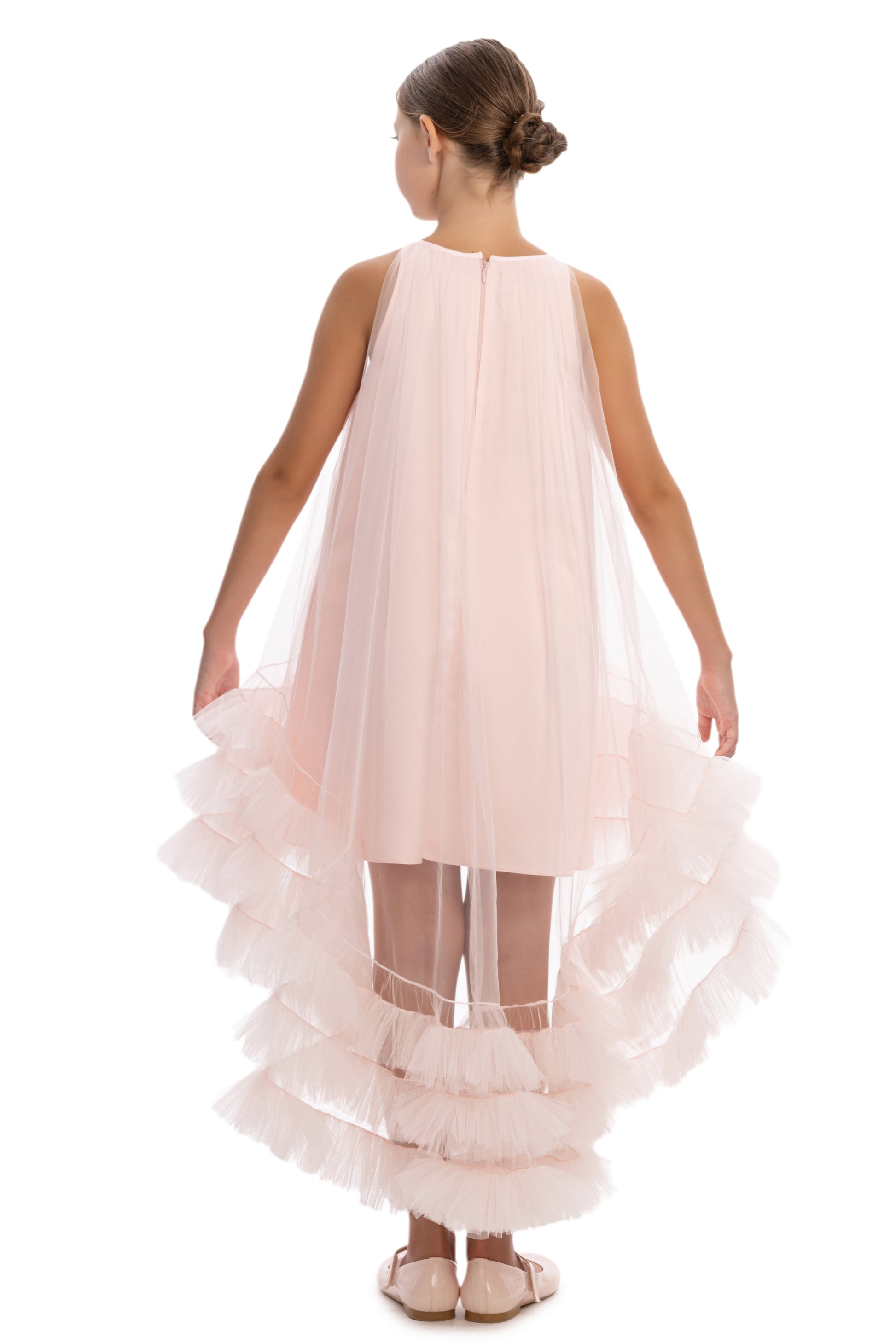 Make her feel like a princess in this stunning blush pink tulle party dress. Perfect for weddings, birthdays, or any special celebration, this gown combines vintage-inspired elegance with whimsical details.